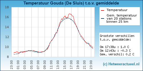 Benchmark van de temperatuur gegevens van de weerstations die aangesloten zijn bij Meteo Gouda