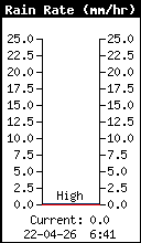 | Barometer trend | Langzaam stijgend | Regensnelheid | 0.0 mm/uur |