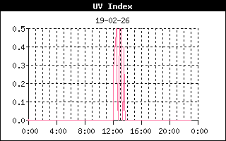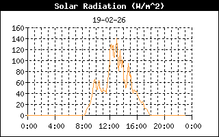 | Maximale zonnestraling | 158 W/m2 om 13:00 uur | Max UV index | 0.5 om 12:02 uur |