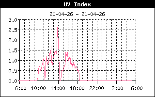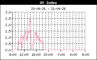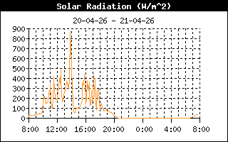 | Maximale zonnestraling | 619 W/m2 om 11:30 uur | Max UV index | 1.6 om 11:27 uur |