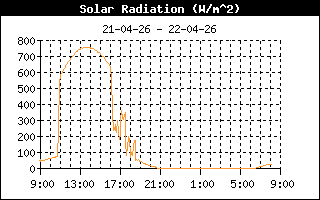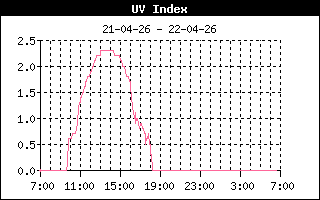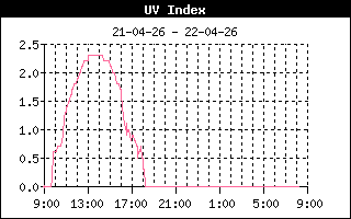 | Maximale zonnestraling | 589 W/m2 om 11:07 uur | Max UV index | 1.4 om 11:02 uur |