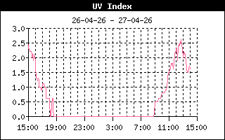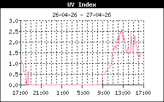| Maximale zonnestraling | 661 W/m2 om 11:27 uur | Max UV index | 2.0 om 11:27 uur |